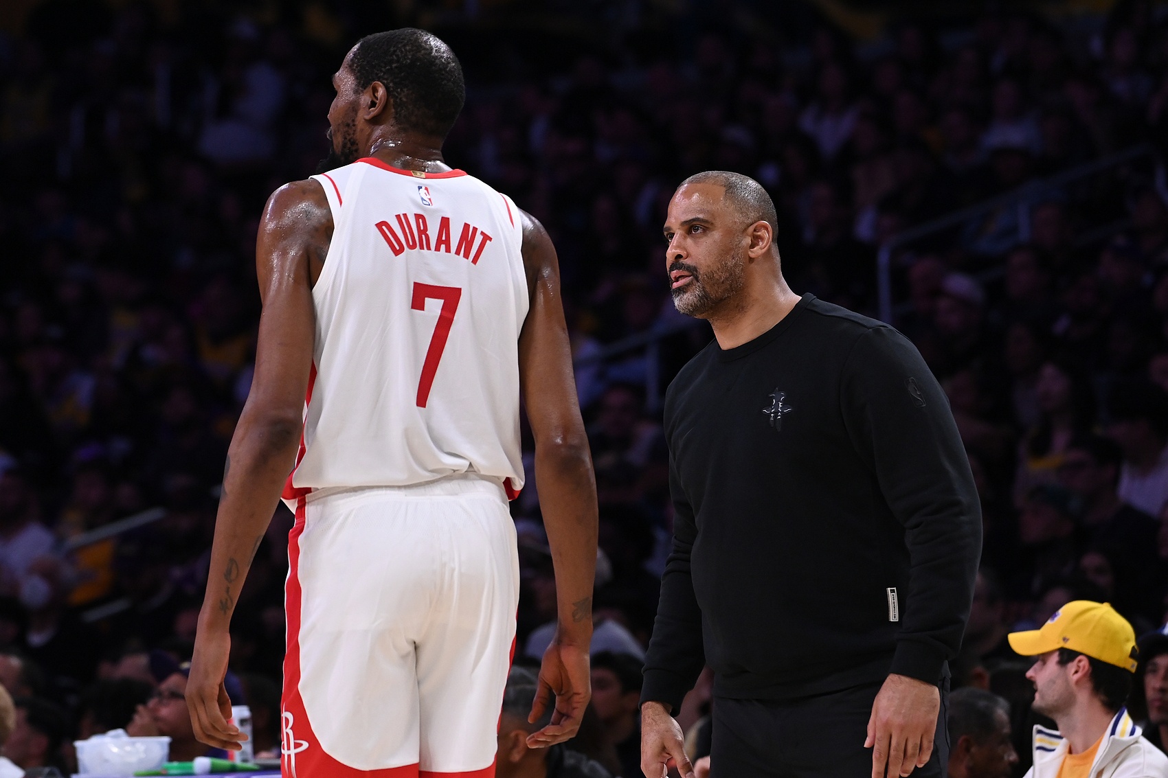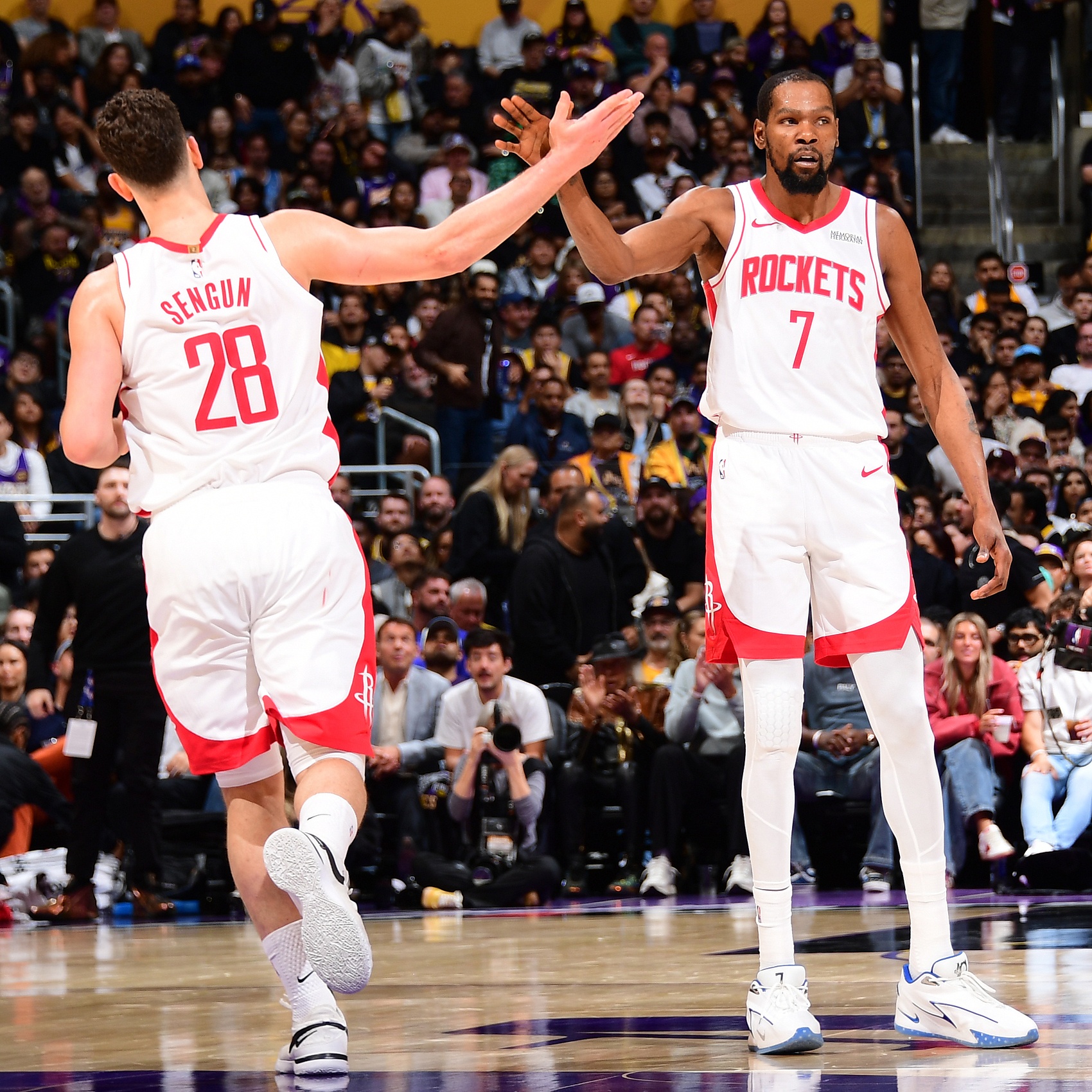 事后看来,也许人们对火箭在赛季末段赢下最后10场比赛中的9场这一表现过于乐观了。一些人将其视为火箭终于找到赢球模式的强烈信号,其间火箭的进攻效率高居联盟第二,而且杜兰特(场均6.9次助攻)在组织串联方面发挥了引领作用。但这其中有6场胜利是对阵未能进入季后赛的球队,包括两度面对众所周知的摆烂大队灰熊,以及对阵爵士和鹈鹕。