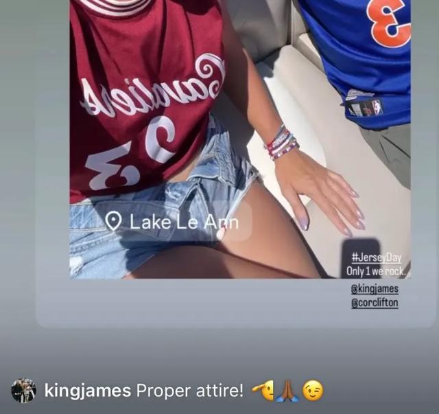 前不久詹姆斯还点赞了骑士随队记者Allie Clifton 发的一张自己穿着詹姆斯骑士球衣的图片,说:“非常合适的穿搭。”