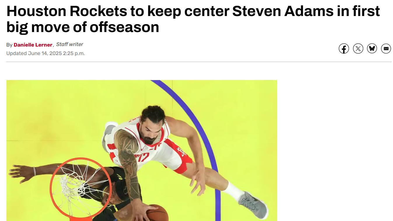 在拿下亚当斯之后,火箭队记Sam Amick、Kelly Iko和Danielle Lerner先后发文披露球队后续计划。